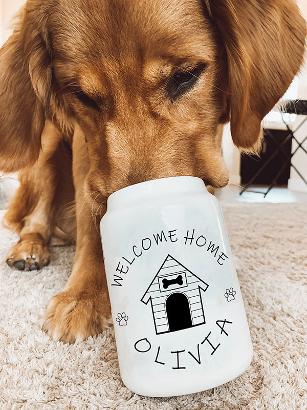 Each product is custom printed with your client’s pup’s name on the front of each jar. We also include your marketing message on the back so your client will always remember who remembered their fur baby.