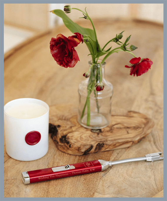 Each product is custom laser-engraved with your client’s monogram on the front of the lighter and your marketing message on the side.