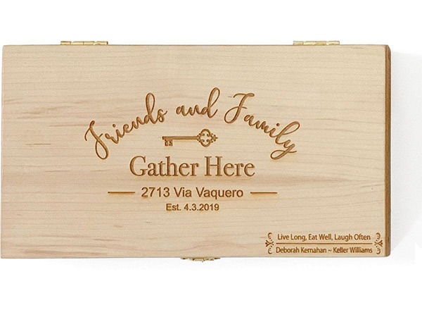 Each box is custom laser-engraved with your client’s personalization and your marketing message.